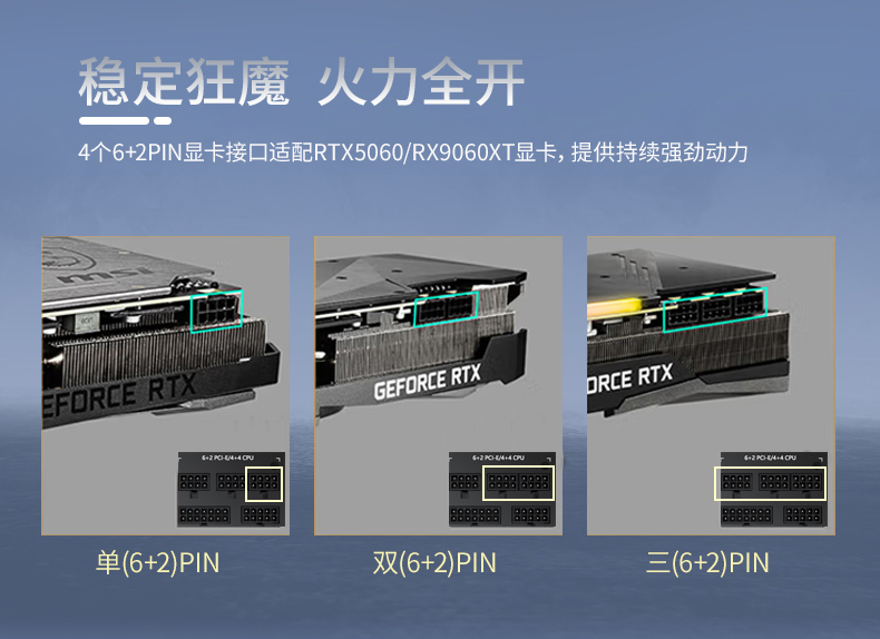 - 显卡接口(6+2)+(6+2)pin