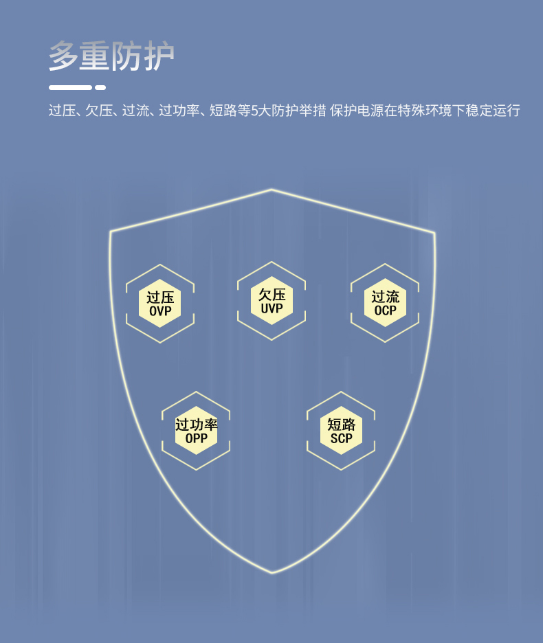 - SCP/OVP/OPP/OCP/UVP